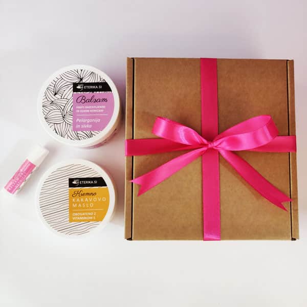 Letos lahko namreč na Eterika.si najdeš čudovite darilne paketke za naravno nego in razvajanje, ki jih lahko oblikuješ po svojih željah.