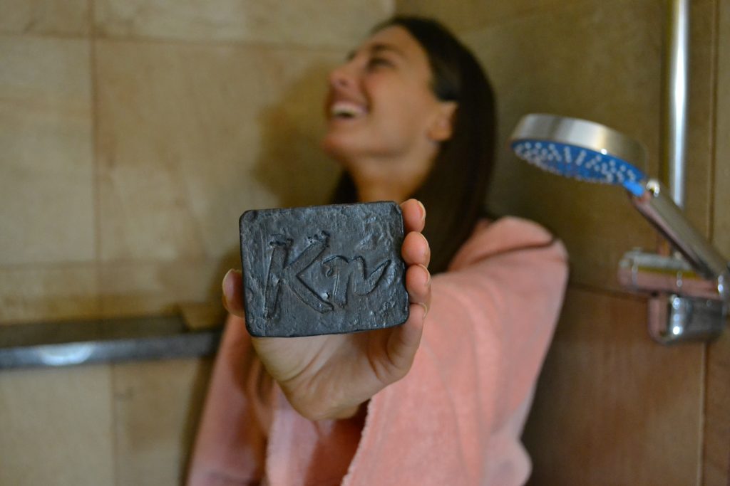 Črno pa je zato, ker vsebuje aktivirano oglje, pridobljeno iz kokosovih lupin. Gre za eno najbolj absorbivnih sestavin na planetu, ki se v medicini uporablja že tisočletja. V Kn črnem milu deluje kot nežen piling, ki nase še dodatno veže nečistoče.
