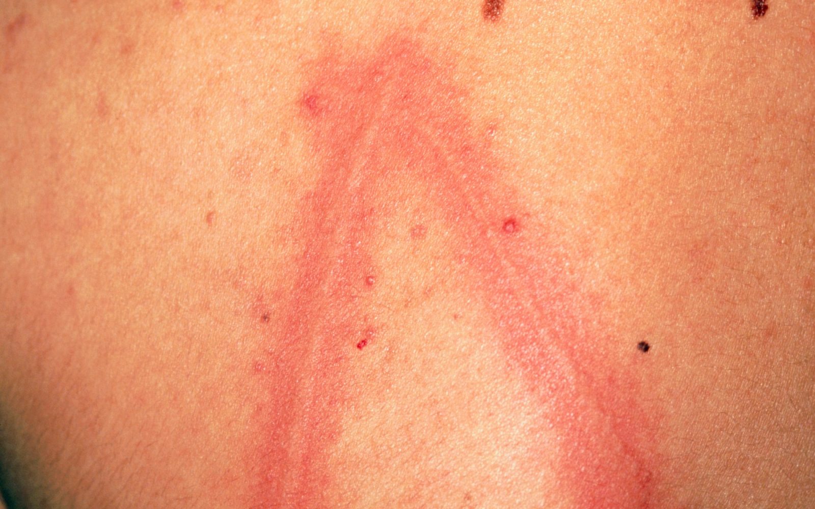 Pri osebah z dermatografijo – “kožno pisavo” se lahko na koži že nekaj minut po pritisku ali božanju pojavijo dvignjene rdeče izbokline, ki običajno izginejo v roku 30 minut. Ploskanje, drgnjenje z oblačili ali posteljnino – celo sedenje – lahko povzroči koprivnico. Gre za stanje, povezano z alergijami na sončno svetlobo in mraz. Zaskrbljenost in visoke temperature jo lahko še poslabšajo. Antihistaminiki lahko pogosto ublažijo simptome.