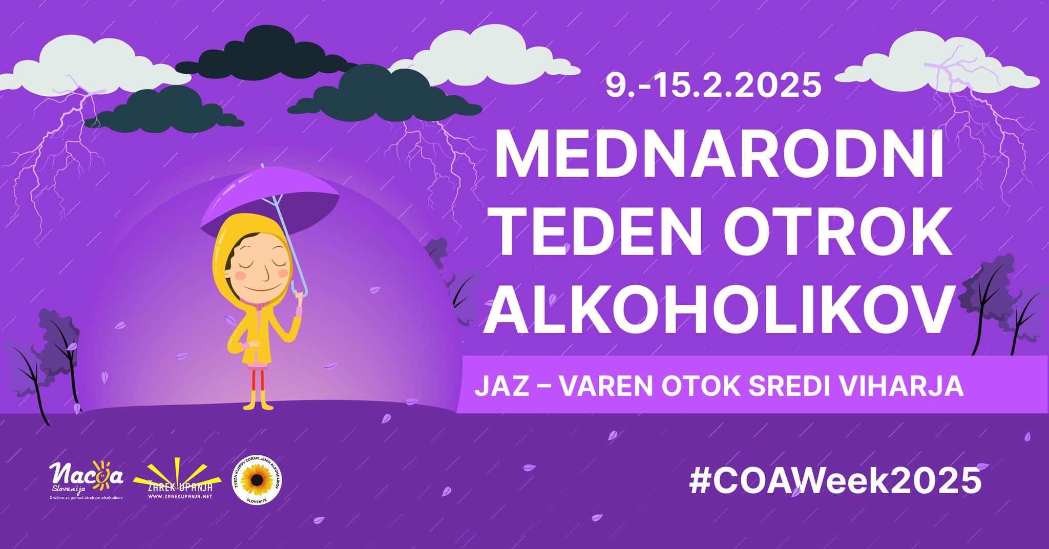 Nacoa Slovenije, Društvo Žarek Upanja in Zveza klubov zdravljenih alkoholikov Slovenije, ob podpori Nacionalnega inštituta za javno zdravje (NIJZ) tudi letos optimistično napovedujejo podporo vsem, ki kot otroci niso mogli spremeniti svojih družinskih okoliščin in nekateri še vedno iščejo pot do moči, stabilnosti in odpornosti.