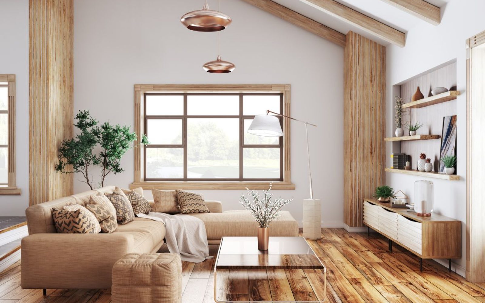 Nasvet: Izberite kotno sedežno garnituro v nevtralni barvi in dodajte blazine ali odeje v zemeljskih tonih za piko na i.