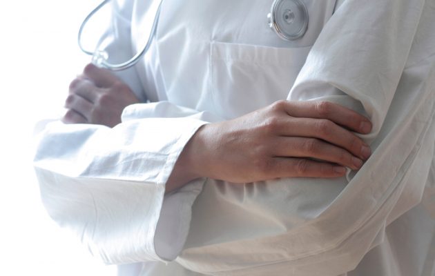 Zdravnik drži malo deklico za rokov, v znak podpore in razumevanja