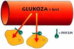 Če ga trebušna slinavka izloča premalo ali pa so celice na insulin neobčutljive, (oz. če bi z našo primerjavo s ključem nadaljevali – če je ključev za vsa vrata premalo ali pa se ključavnicam ne prilegajo oz se v njih ne obrnejo), pride do motenega prehajanja glukoze iz krvi v tkiva, glukoza torej v krvi ostaja “ujeta” in njena krvna koncentracija se zviša. Preprosto povedano je osnovna motnja pri sladkorni bolezni torej nesposobnost prehajanja sladkorja – glukoze iz krvi v celice in sladkorno bolezen tako označuje stalno zvišan nivo krvnega sladkorja – hiperglikemija, ki jo lahko spremljajo znani simptomi nenehne žeje in pogostega mokrenja, hujšanja, splošne oslabelosti in tudi motenj zavesti (od zaspanosti do nezavesti), dolgoročno pa povzroča okvare velikih (makroangiopatija) in majhnih žil (mikroangiopatija) s posledično prizadetostjo delovanja ledvic, močno pospešeno aterosklerozo z mašenjem žil (srčna in možganska kap, gangrena spodnjih okončin) in slabšim vidom.