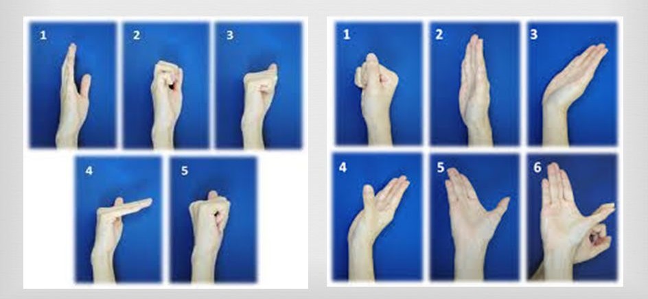Strokovnjaki fizioterapevti predlagajo še nekaj vaj: prva se imenuje »skrčeni prsti«: prste postopoma krčite po sklepih, začnite zgoraj iz iztegnjenega in nadaljujte s selektivnim krčenjem sklepov. Zapirate in odpirate pesti. Vaje lahko izvajate tudi s palcem, pri kateri počasi drsite po dlani s palcem navzdol. V naslednjem koraku skušajte brez bolečin približati palec in mezinec.