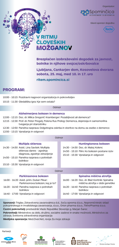 V ritmu možganov bo letos tematsko pokril področja demence, multiple skleroze, Parkinsonove bolezni, spinalno mišično atrofijo in Huntingtonovo bolezen.