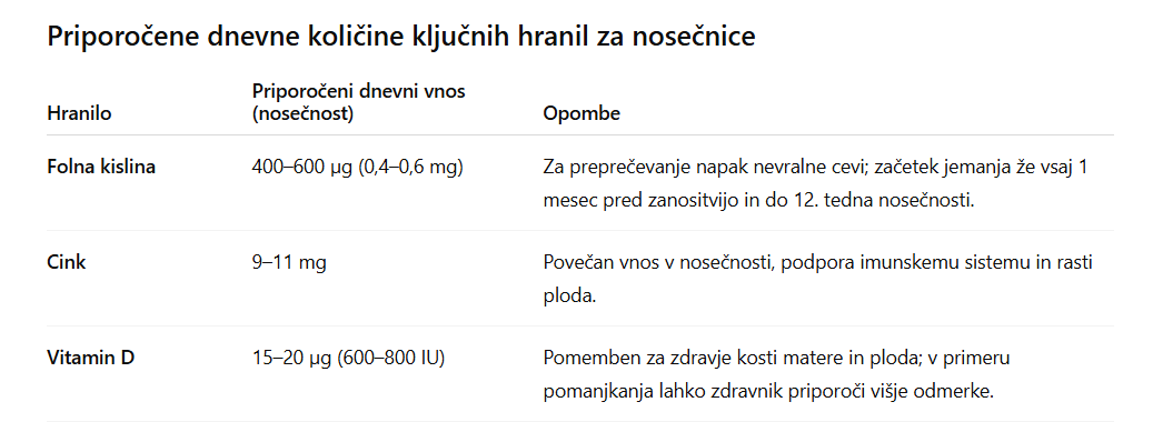 - Prehrana.si – Prehranska priporočila za nosečnice in doječe matere: https://prehrana.si/component/content/article?id=43:prehranske-smernice-za-nosecnice-in-dojece-matere