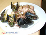 Ostali smo pri pitulicah: na mizo smo položili vlažne servete in na njih vlečeno testo, ki smo ga premazali, nanj naložili pripravljeno skutino mešanico in nato vso pripravljeno zelenjavo, ki so jo pridne roke pred tem skrbno pripravljale. Še dišalo je tako, da smo se skoraj nasitili. Vse smo naložili na smetano in nato lepo zvaljali v zavitke, narezali na koščke in položili v “protfan” Tako smo vsi prisostvovali in se naučili kako se pripravi pitulice. O samem receptu ne bom pisal, ker ga boste s slikami vred imeli vsi na razpolago, lahko boste tudi tiskali in si recept izobesili nad štedilnikom. Smo pa izvedeli, da je to bosanska jed, neke vrste burek, mi smo pripravili zelenjavnega, Babi pa je od doma prinesla tudi takšnega s slanino, to je bilo bolj po mojem okusu. Ko smo končali, so iz pečice že prišle “frišno” pečene pitulice in vsi smo si oblizovali prste. Med vsem tem kuhanjem, so nekateri pripravljali, nekateri rezali, nekateri pomivali, nekateri se malo spoznavali, nekateri tudi igrali na kitaro in kaj zapeli. Začela je Babi, ko je Uki zapela zelo lepo pesmico in nadaljeval je “Mlakar”. Pri primorski hrani, se prileže tudi primorska pesem in “Še en glaž vina mi dej…” Tako smo bili vsi prav dobre volje in že zdavnaj vsi sproščeni. Razvijale so se razno razne debate in pripravljale še boljše dobrote. Tako je bil na meniju naslednja specialiteta: morski sadeži po Babičino. Predvsem je bila umetnost v pripravi in videli smo, kako se glavni mojstrici tudi posvetujeta, kaj manjka ali kaj bi še bilo dobro. In to kar smo nato jedli, je bilo res dobro.