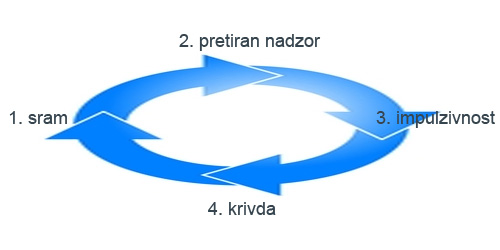 Občutek sramu je med ljudmi, ki poskušajo hujšati, pogost. Ko se mu skušamo izogniti, se zatečemo k pretiranemu nadzoru prehrane in svojih dejanj. Prevelikim zahtevam do sebe pa ne moremo slediti. Ko obupamo, začnemo spet nepremišljeno jesti, zato nas preplavi krivda. Ta zaneti občutke sramu in spet smo na začetku.