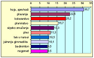 Delež odraslih Slovencev, aktivnih v posameznih športnih dejavnostih