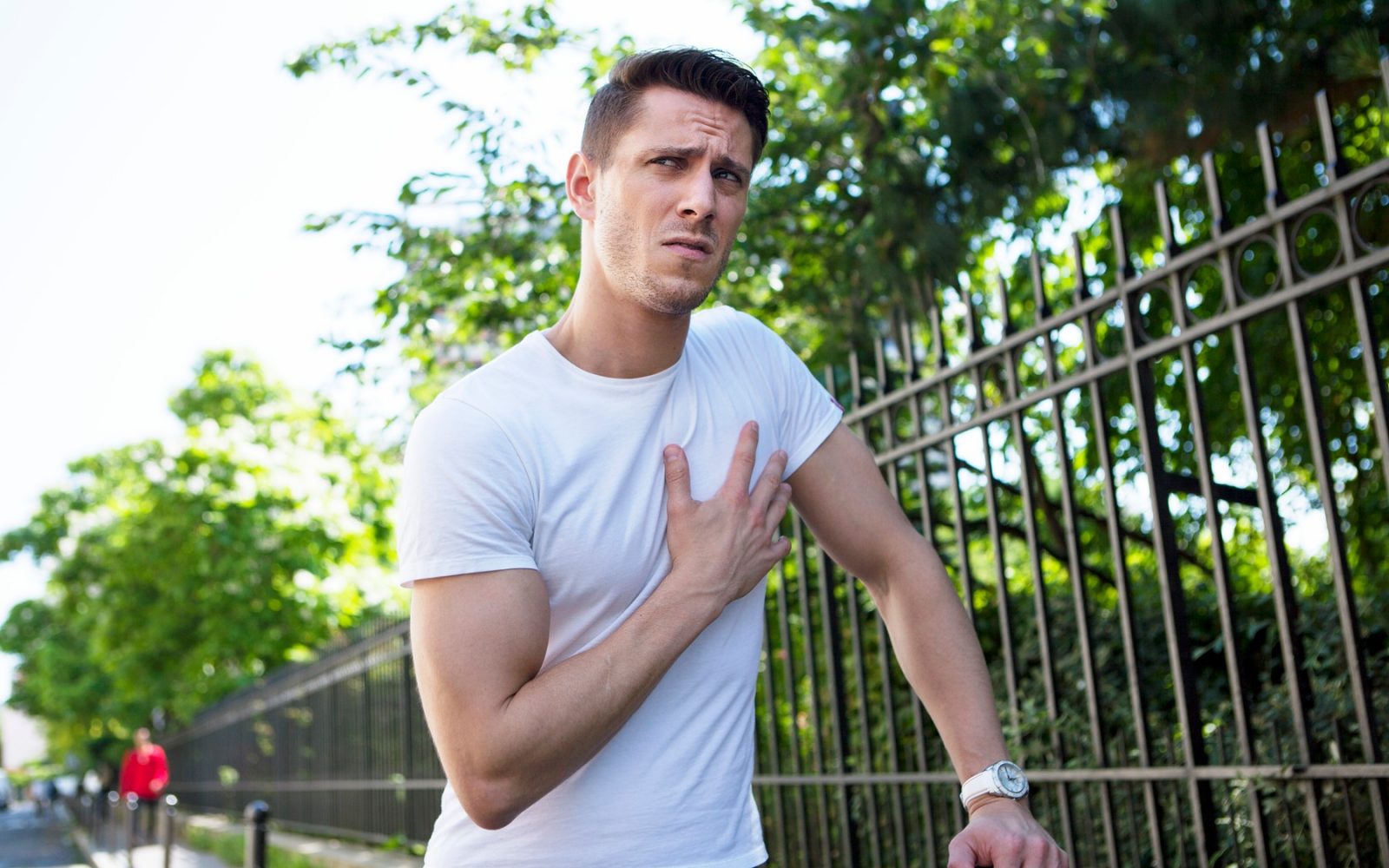 Bolečina, tiščanje, top občutek, stiskanje … Se lahko pojavlja za prsnico, pogosto pa se širi čez prsni koš.