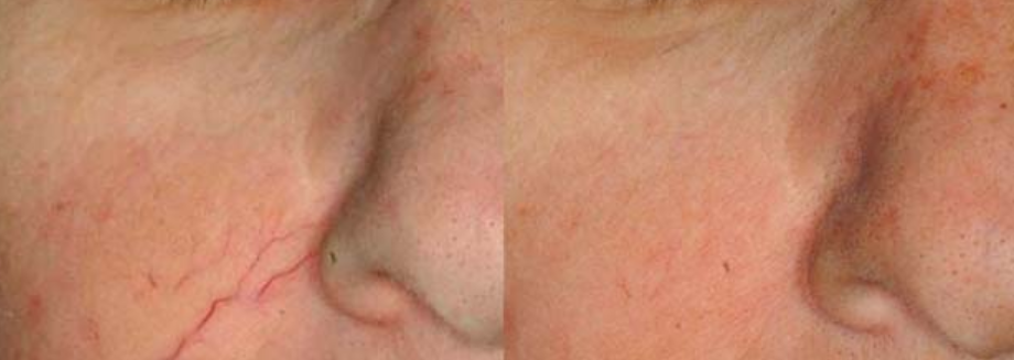 Pred in po laserskem odstranjevanju kapilar na obrazu