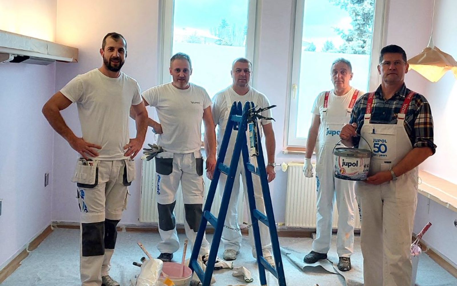 Družba JUB je za 12 sob za porodnice z novorojenčki ter spremljajoče prostore, ki so potrebni prenove, zagotovila pralne barve JUPOL Latex matt v nežnih pastelnih barvnih odtenkih, ki jih je izbralo osebje v porodnišnici, ter ostale potrebne izravnalne mase, kite in premaze.