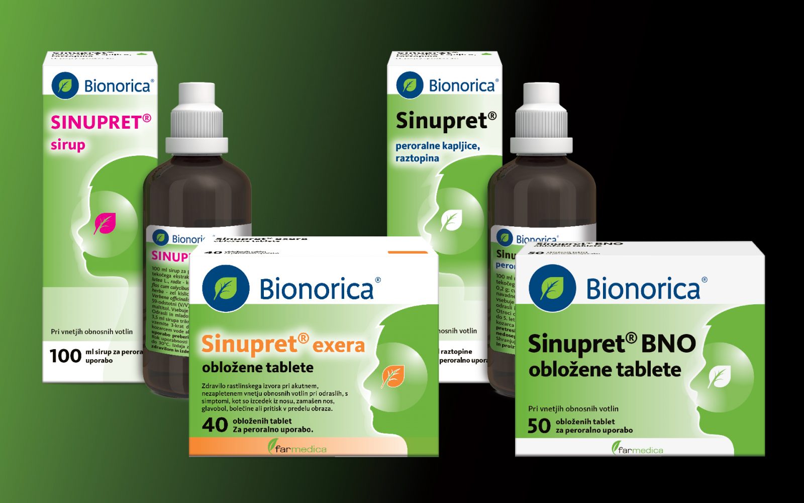 Sinupret BNO močnejše tablete – primeren za vse generacije od 12. leta starosti dalje. Primeren tako za akutna stanja, kot za daljše, večtedensko jemanje ob vnetju sinusov.