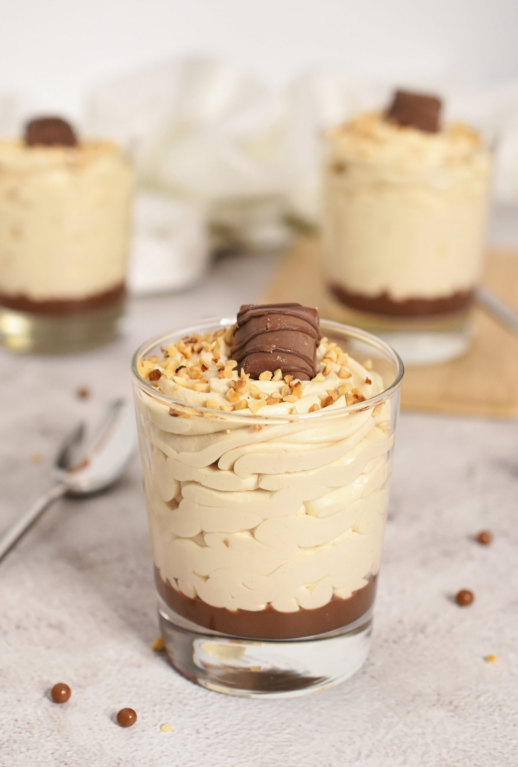 - Ohlajeno čokolado razdelimo v kozarce in jih napolnimo s kremo. Položimo v hladilnik, da se dobro ohladijo, nato jih posipamo z lešniki in poljubno dekoriramo.