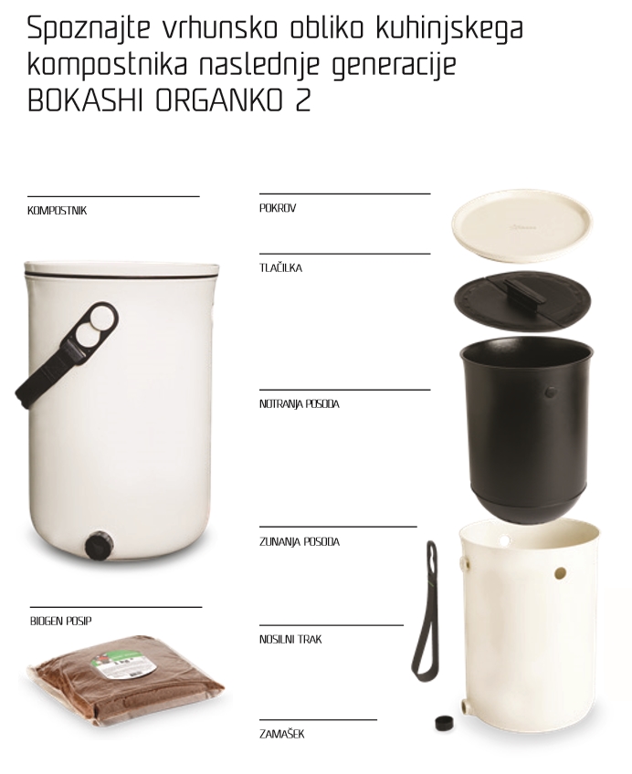 Bokashi Organko predstavlja prvi korak do krožnega gospodarjenja in trajnostnega ravnanja pri uporabnikih doma, saj biološki odpadki gospodinjstva postajajo vir za nov življenjski krog. S pomočjo posebnega naravnega posipa odpadki v tem kompostniku namreč ne zgnijejo, pač pa fermenirajo. S tem uporabniki dobijo izvrstno osnovo za domači kompost, fermentacijska tekočina je odlično gnojilo za domače notranje in zunanje cvetje ter vrtnine. Tekočina je tudi učinkovito čistilo za domače odtočne cevi.