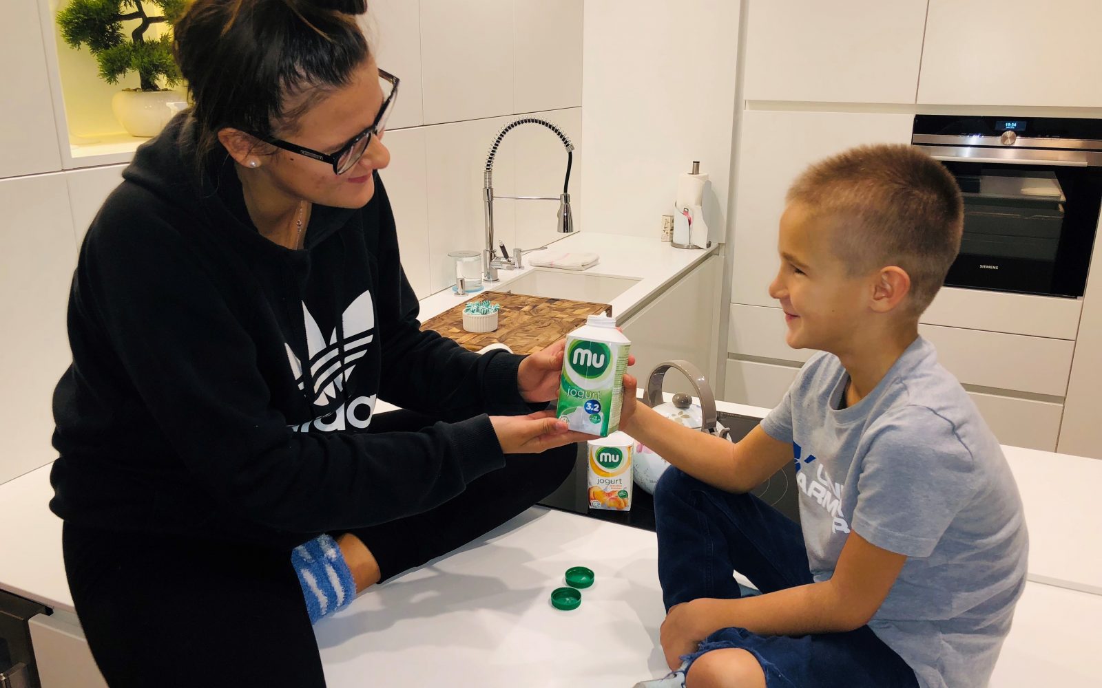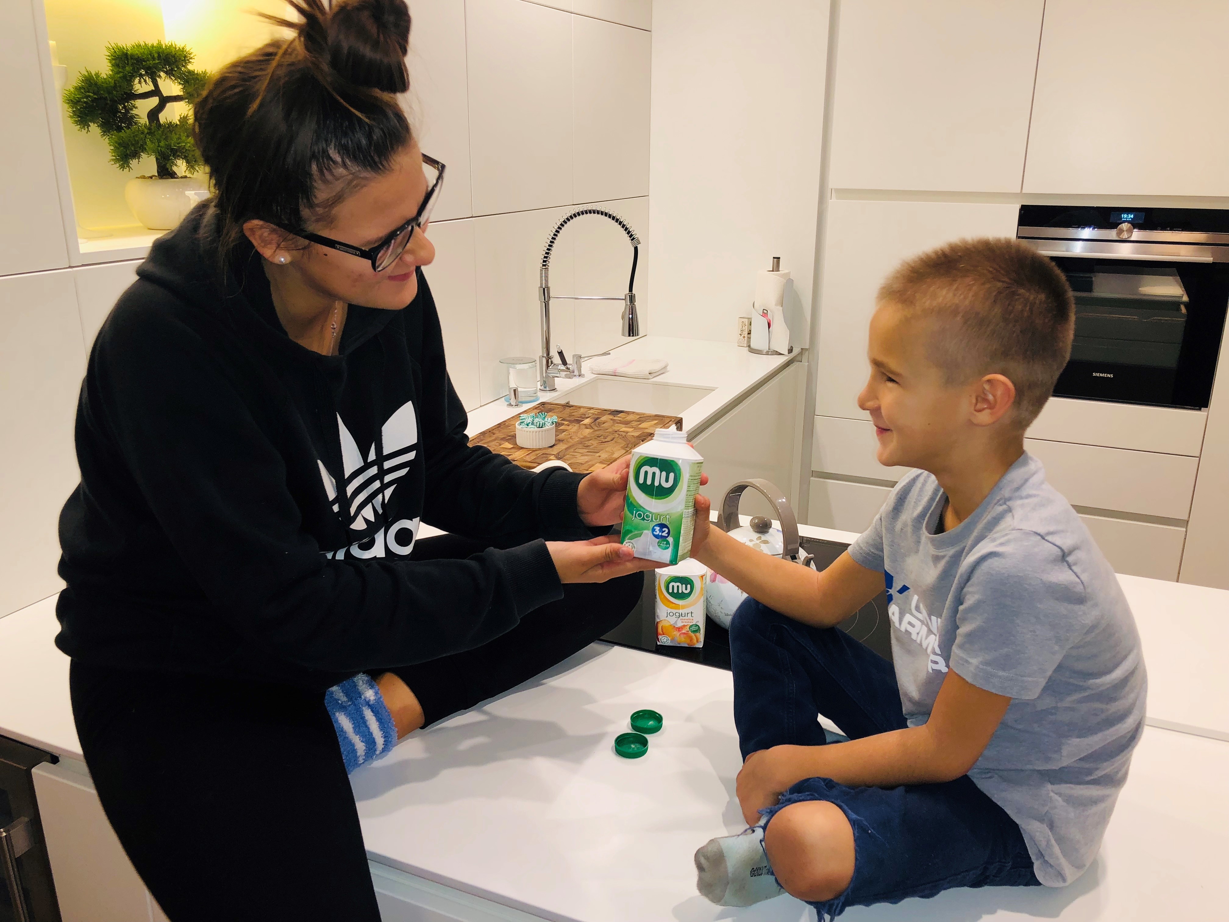 Ob zajtrku, velikokrat imamo na jedilniku mlečne izdelke, najraje jogurte, se pogovarjamo, kaj nas čaka tisti dan – mogoče testi, nepripravljenost na njih, ali športni dan … Njuna močna želja, da vse opravita popolno in najboljše, kar se da. Takrat, kot mati dobim moč, da ju spodbudim, dam nasvete, ali preprosto, da sem strpna, ko gre ura prehitro in se debata se še kar ne zaključi.