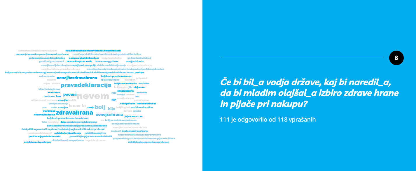 Slika: Mladi lahko v anketi, ki poteka v okviru Unicefove kampanije Fix my food lahko izrazijo svoje mnenje. Na vprašanje o tem, kaj lahko na tem področju naredi država odgovarjajo: prava deklaracija, ne vem, bolj zdrava hrana, cenejša kvalitetna hrana.