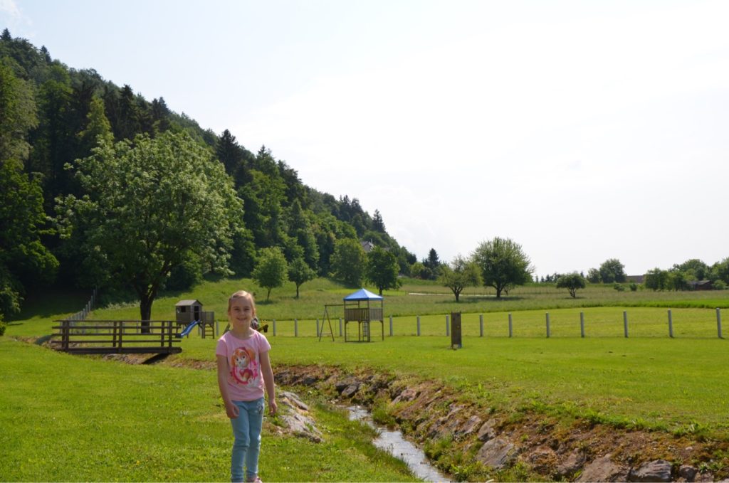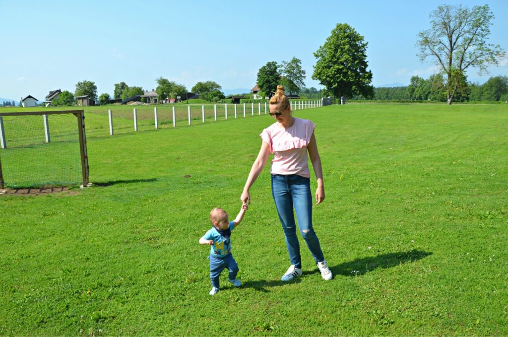 Že ob prihodu sem dobila dober vtis – grad, ribnik, slaščičarna in velik travnik z veliko izbiro igral za otroke. Imajo tudi veliko parkirišče, kar ni zanemarljivo za družine z otroki. Lokacija je očitno všeč kolesarjem, glede na to, da smo jih srečali  kar nekaj. Poti so zelo lepe, okrog in okrog pa gore in hribi ter čudovita narava. Začeli smo s sprehodom do gradu in okoli njega. Kim se je seveda pritoževala, ker je morala hoditi v klanec, a je bila, ko smo prišli do ribnika in krasnega travnika, navdušena. Opazovali smo ribice, otroka sta bila najbolj navdušena nad kačjimi pastirji. Nestrpno smo se sprehodili do igral, mami in ati pa sta si takrat lahko privoščila kavico. Nik je zaspal, zato je bil mir še toliko lepši. Pohvalila bi kavarno oziroma slaščičarno, ki me je popolnoma navdušila s prijazno postrežbo in ugodnimi cenami, kljub temu da se nahaja na obiskani turistični točki.