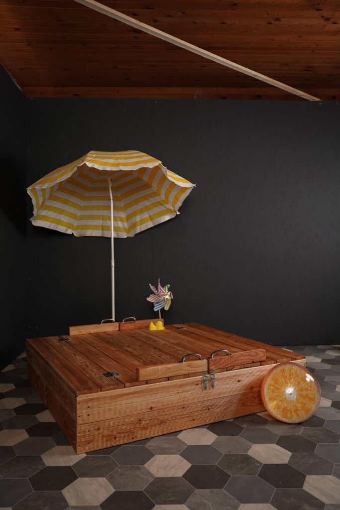 Peskovnik ima pokrov, ki se ob odprtju spremeni v dve klopi z naslonjali. Na klopeh lahko sedijo otroci med igro ali pa starši med nadzorovanjem igre njihovega malčka. Pokrov bo peskovnik obvaroval pred živalmi, ki bi se lahko odločile peskovnik uporabiti za domovanje ali pa stranišče, poleg tega pa boste lahko v njem imeli pospravljene tudi vse igrače.