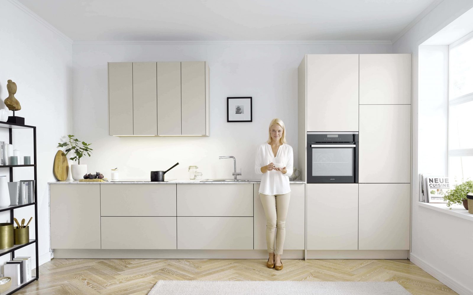 - Minimalistične kuhinje (elegantne kuhinje brez ročajev, ravne linije, zadržane barve)