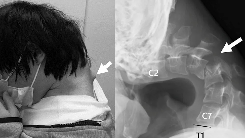 25-letni ljubitelj igric je več let pretiraval z buljenjem v telefon, zaradi česar je utrpel hude zdravstvene težave. Japončeve vratne mišice so zaradi vsakodnevne nenaravne lege, ki je trajala tudi po več ur, oslabele, kar je pripeljalo do poškodbe hrbtenice in bule na vratu. Zdravniki so pri mladem moškem, ki ni mogel več dvigniti glave, diagnosticirali sindrom spuščene glave oziroma cervikalno kifozo.
