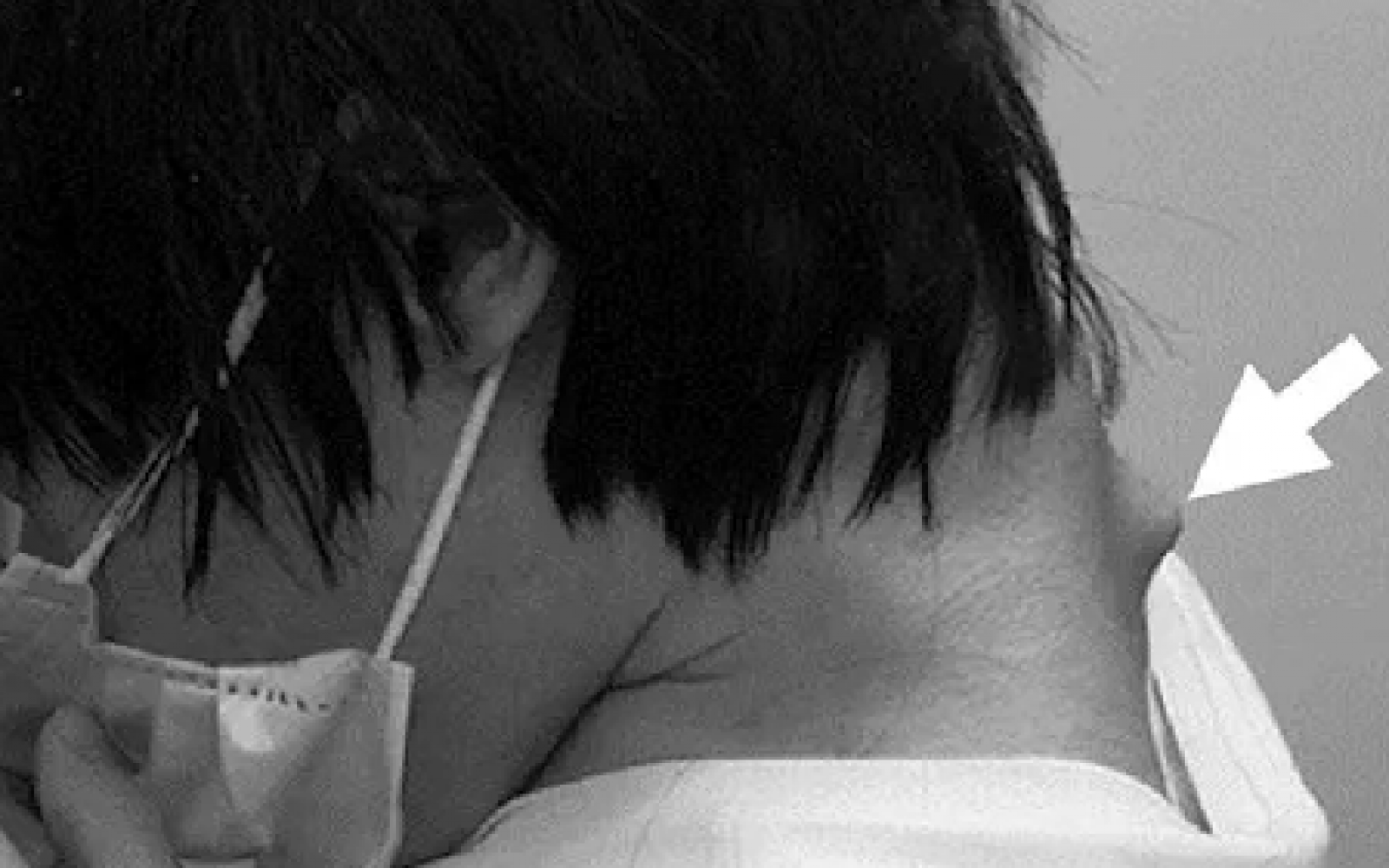 Leta 2023 je prvič potožil zaradi bolečin v vratu, kratek časa pozneje pa glave ni mogel več dvigniti. Poročal je tudi o otrplosti obeh rokah in o šibkosti v levi roki. Ko je Japonec prvič obiskal bolnišnico, je le s težavo dvignil brado s prsi.