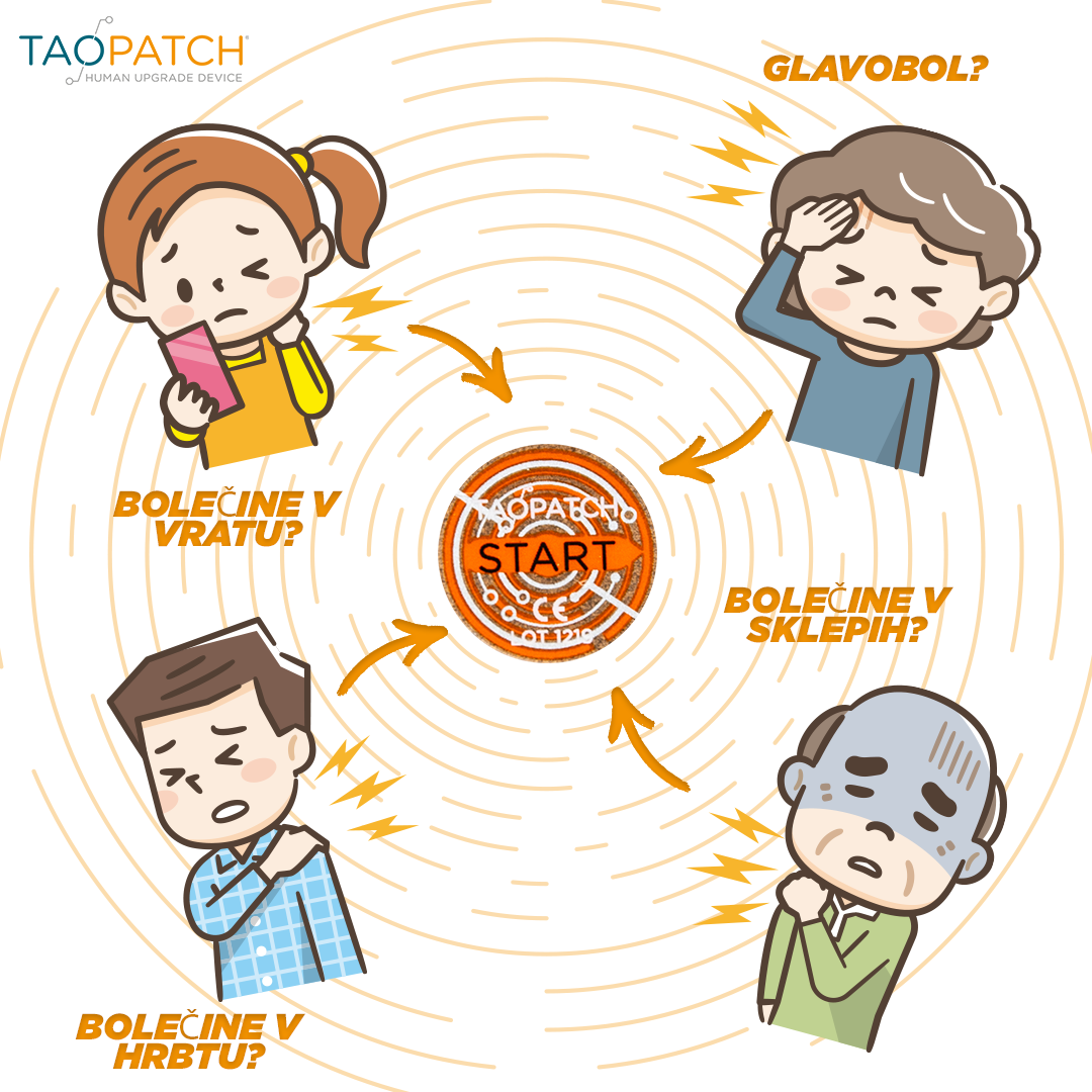 ”Jaz vam bom pokazala mesta namestitve, česar se potem vi samo držite. Ničesar ne spreminjate sami, če pa bi se pojavile kakšne spremembe, me boste poklicali, pa bova preverili in morda določili nova mesta,” so bile prijazne usmeritve, ko mi je nameščala en obliž na vratno vretence in drugega na sredino prsnice. Hkrati pa sem dobila še Taopatcha® Start, za katera mi je fizioterapevtka priporočila, da ju uporabim v času menstrualnega ciklusa (da si ju nalepim na območje jajčnikov tri dni pred pričetkom menstruacije) – takrat imam namreč precej hude bolečine v križnem predelu.
