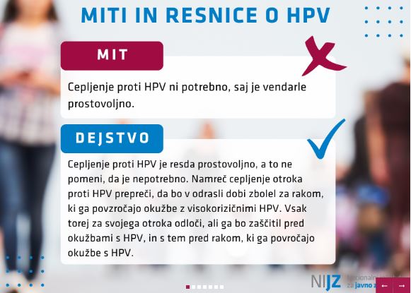 Najpriporočljivejše je cepljenje mladih, preden postanejo spolno aktivni, saj cepiva ne ščitijo pred okužbami, katerimi smo že bili izpostavljeni. Prostovoljno cepljenje v breme obveznega zdravstvenega zavarovanja se izvaja ob sistematskem pregledu pri dekletih in fantih, ki obiskujejo 6. razred osnovne šole, v šolskem letu 2023/24 pa kot dobrodošla novost tudi pri fantih, ki obiskujejo 1. in 3. letnik srednje šole. Cepljenje v breme obveznega zdravstvenega zavarovanja se opravi tudi pri zamudnicah in zamudnikih (dekleta, ki so obiskovala 6. razred v šolskem letu 2009/10 ali kasneje in fantje, ki so obiskovali 6. razred v šolskem letu 2021/22 ali kasneje in še niso bili cepljeni), za vse ostale pa je cepljenje še vedno le samoplačniško.