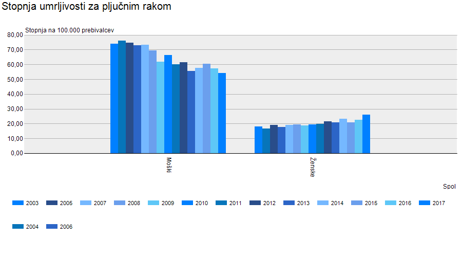Podatki Nacionalnega inštituta za javno zdravje navkljub vsemu kažejo, da pljučni rak pri moških od leta 2003 pa do 2017 v Sloveniji strmo pada. V 14 letih se je tako število smrti moških, obolelih za pljučnih rakom, zmanjšalo kar za 20 tisoč.