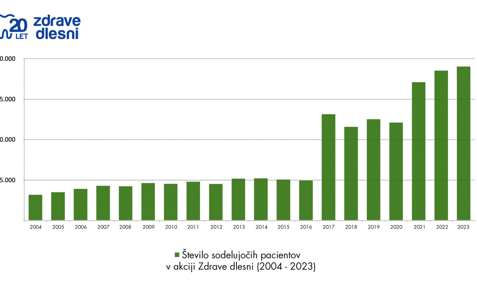 Akcija Zdrave dlesni se je leta 2004 začela kot enotedenska aktivnost v zobnih ordinacijah. Takrat je v njej sodelovalo 450 strokovnjakov za ustno zdravje, ki so z nasveti pomagali 22.500 pacientom. V letošnji jubilejni 20. akciji Zdrave dlesni, ki od leta 2017 poteka cel mesec, bo sodelovalo več kot 1300 strokovnjakov za ustno zdravje, informacije o popolni ustni higieni pa bo s tem pridobilo okoli 130.000 posameznikov.