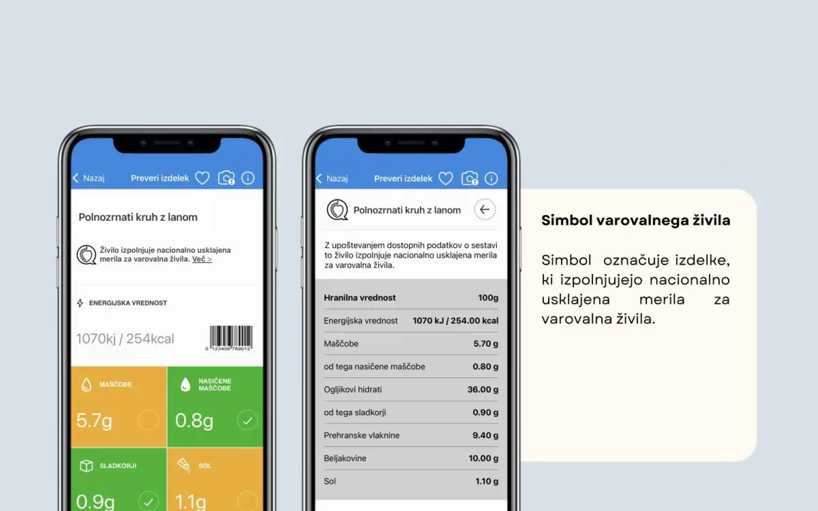 »Ponudba živil na trgu je velika in pogosto so promovirana prav živila z manj ugodno prehransko sestavo. Ni dvoma, da je potrošnik pogosto pred dilemo, katerim informacijam lahko zaupa,« pojasnjuje Jasmina Bevc Bahar z Zveze potrošnikov Slovenije, predstavnica enega od partnerjev, ki so razvili aplikacijo in dodaja: »Nacionalna shema varovalnih živil potrošnikom pomembno olajša izbiro zdravju koristnih živil.” Baza vključuje več kot 45.000 živil in pijač.