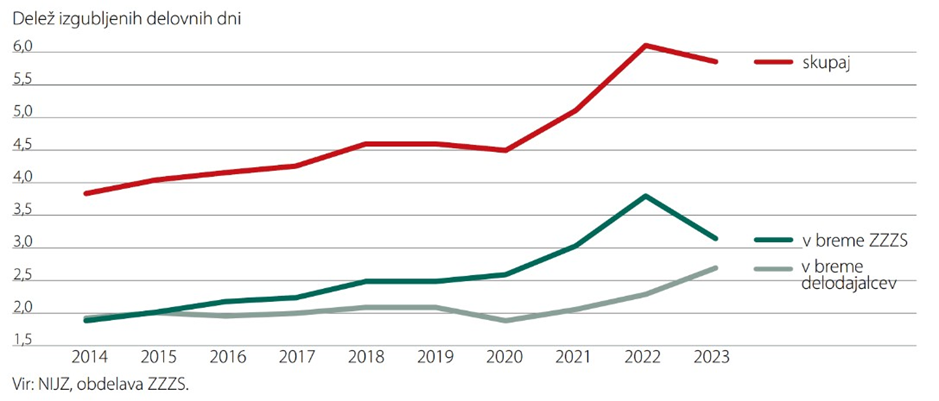 “Na takšno rast so v preteklih letih vplivali epidemiološke razmere, spremembe Zakona o delovnih razmerjih s skrajšanjem števila dni v breme delodajalcev ter dvig povprečnih osnov za obračun nadomestil v letu 2022 in 2023. V letu 2023 so sicer izdatki nižji, vendar izključno zaradi epidemije covida-19,” je razložil ter dodal, da je rast izdatkov neizogibna predvsem zaradi sorazmerno visoke zaposlenosti, stalnega spreminjanja strukture aktivnega prebivalstva, torej daljše upokojitvene starosti, ter zaradi sistemske odsotnosti omejitve trajanja staleža in neusklajenosti postopkov začasne in trajne nezmožnosti za delo.