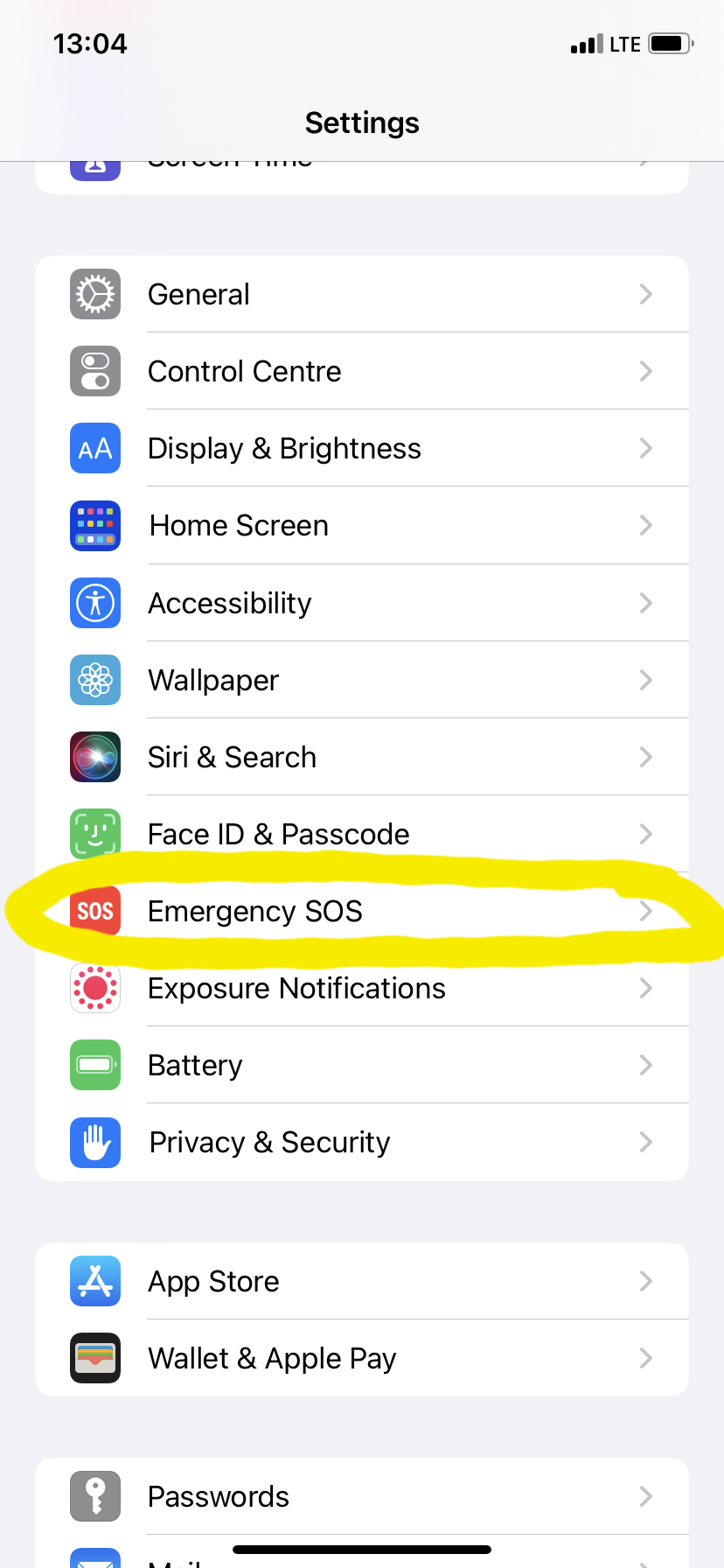 V splošnih nastavitvah poiščemo in odpremo “Emergency SOS”