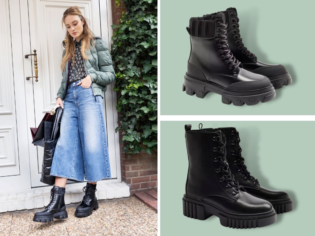 Črni combat škornji so priljubljeni dodatek vseh ljubiteljic mode in se popolno kombinirajo z vodilnimi modnimi trendi, kot so široke ali cargo hlače ter uporniški grunge videz. Nam pa so še prav posebej všeč v kombinacijah z mini oblekami in črnimi najlonkami – stajling, ki ga pogosto lahko vidimo tudi na družabnih omrežjih. V Deichmannu smo našli gležnjarje iz kombiniranih materialov, katerih glavni adut je prav glomazni podplat pravega futurističnega videza. Poleg tega vas v Deichmannu čaka velik izbor klasičnih gležnjarjev z vezalkami, ki vam bo pričaral enostavnejši, klasični videz.