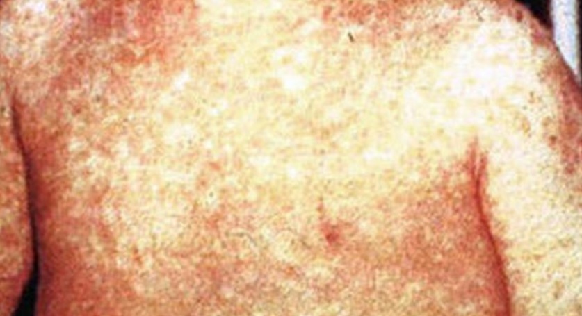 - značilen izpuščaj nad nivojem kože
