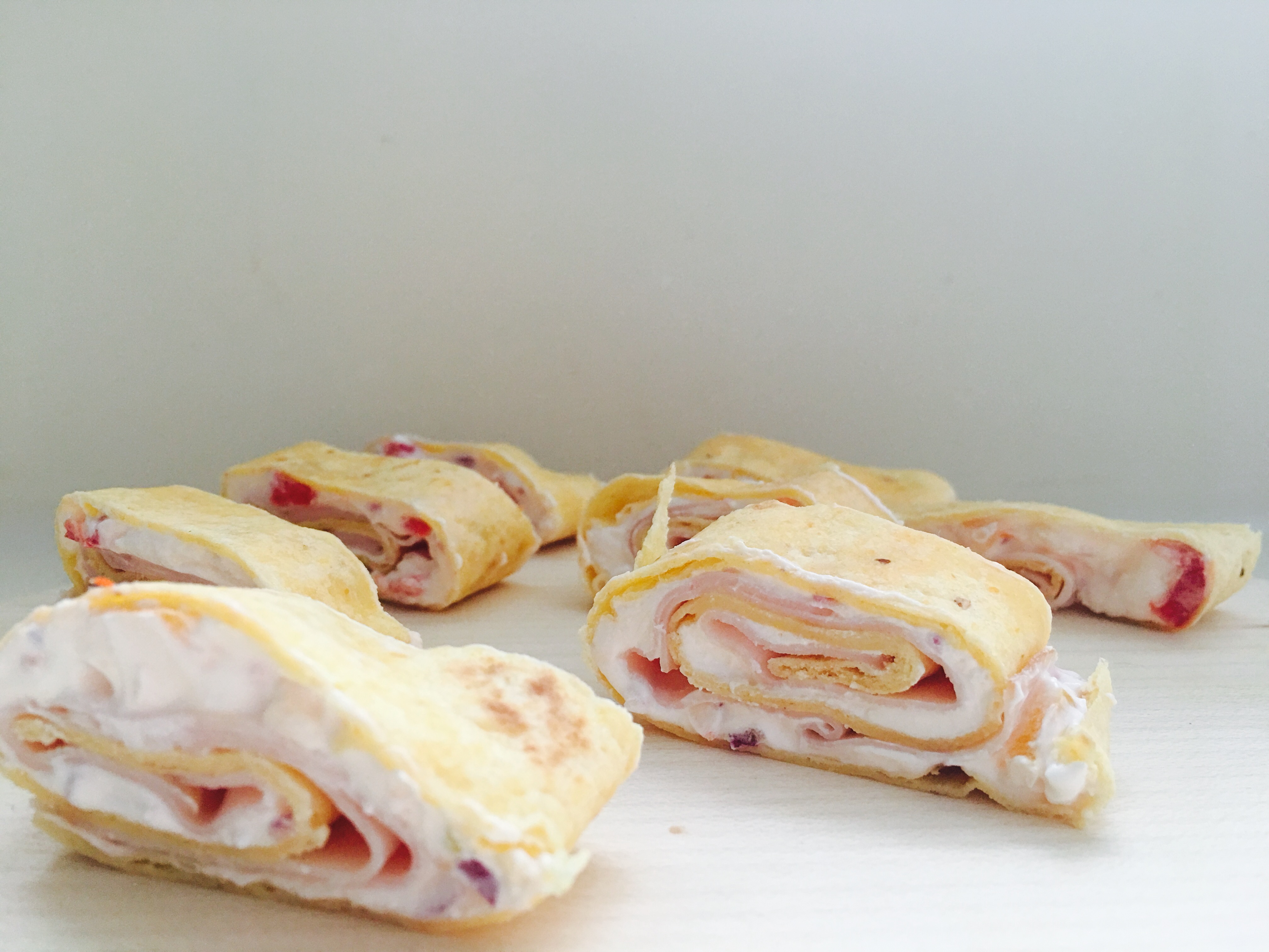 Najprej pripravite namaz iz kremnega sira, drobno narezane čebule, paprike, kumare in naribanega cheddar sira. Če se vam zdi namaz pregost, ga razredčite s kislo smetano. Nato premažite tortilje, čez položite dve rezini pečenih puranjih prsi, in zvijte.