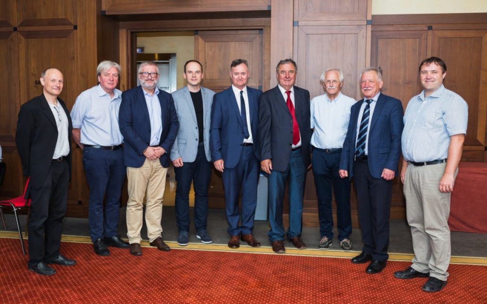 (Foto: govorci na okrogli mizi, od leve proti desni: prof. dr. Aleš Blinc, dr. med., prof. dr. Zlatko Fras, dr. med., doc. dr. Tit Albreht, dr. med., prof. dr. Peter Pregelj, dr. med., prof. dr. Radko Komadina, dr. med., prof. dr. Pavel Poredoš, dr. med., prim. Martin Možina, dr. med.,  prof. dr. Dušana Šuput, dr. med., doc. dr. Janez Rifel, dr. med.)