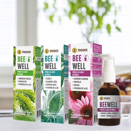 V jesensko zimskem času poskrbite, da bodo prostori, v katerih se zadržujete večkrat prezračeni ter dovolj vlažni. Če na voljo nimate vlažilcev, lahko prostor navlažite na druge načine, predvsem pa skušajte dihati skozi nos. Hkrati skrbite za redno vlaženje in zaščito grla in žrela z novimi pršili BEEWELL, ki vsebujejo naravne izvlečke, eterična olja ter D-pantenol, ki z dodanim vitaminom B3 niacinom prispevajo k ohranjanju zdravih sluznic. Medexov BeeWell priporočamo tudi osebam, ki v svojem poklicu veliko govorijo in pevcem. Je priročen, uporabljate ga lahko doma in na poti.