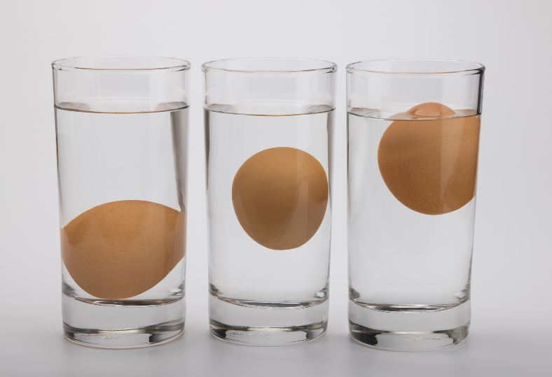 Sveža jajca imajo manjšo zračno celico, zato so gostejša in potonejo. Stara jajca pa imajo večjo zračno celico, zaradi katere so lažja in priplavajo na površje.