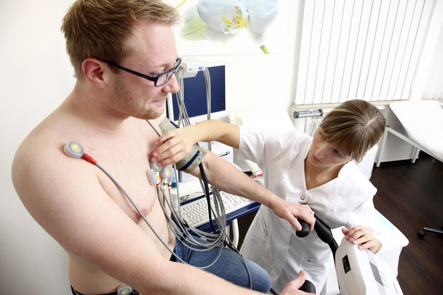 ”Mož je zdravniku povedal za bolečine v prsnem košu, pri čemer je navedel, da je nekaj podobnega doživel pri košnji trave nekaj dni prej. Takoj so mu naredili EKG in izmerili krvni tlak. Naredili so mu še ultrazvok, ki je zaznal nepravilnosti v delovanju srca. Nato so na kolesu opravili obremenitveni test. Že po eni minuti je mož začel tožiti zaradi bolečin, začelo ga je dušiti, nato pa začutil pritisk v prsnem košu. Zdravnik je takoj reagiral, ustavil preiskavo in poskrbel, da so se simptomi umirili. Potrdil je sum na angino pektoris in naju napotil v bolnišnico z mislijo, da moramo narediti vse, da preprečimo grozeč srčni infarkt.
