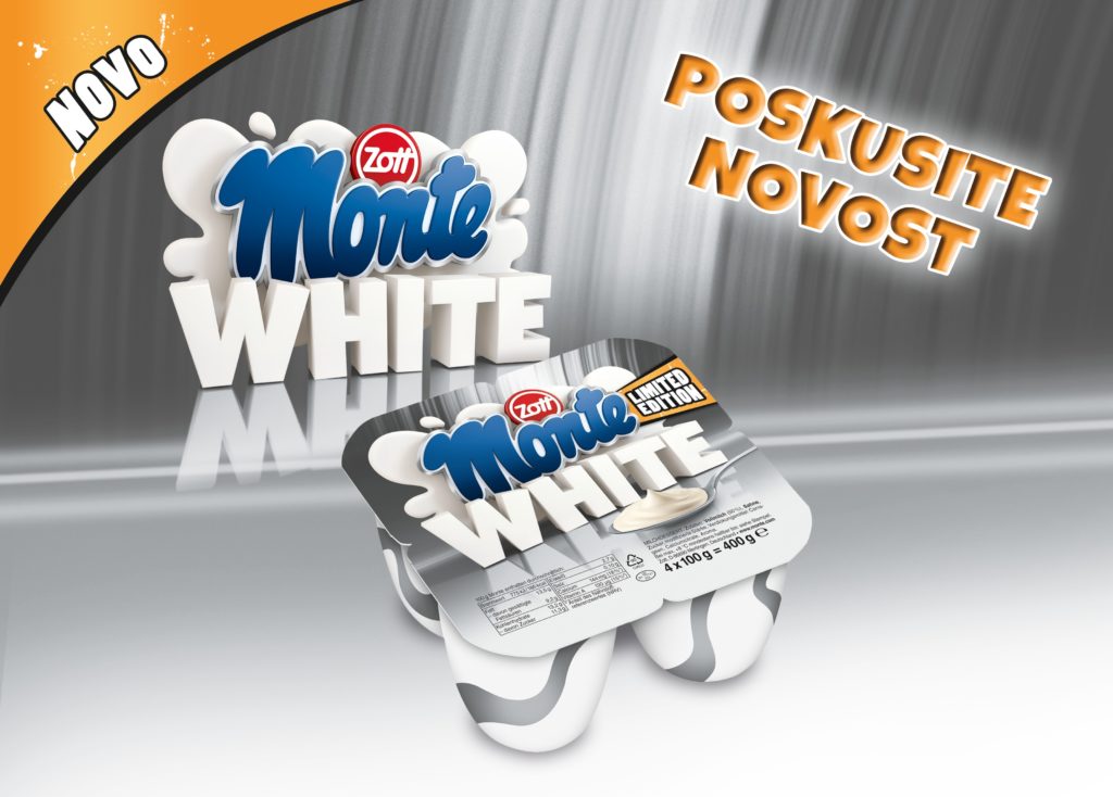 Zott je pripravil odlično presenečenje, ki bo razveselilo tako odrasle kot otroke. Monte White oz. v polnem imenu Monte White Fan Edition je nov proizvod družbe Zott, ki v lončku skriva zgolj beli del deserta Monte. Monte White bo odlična izbira za posladkati se tako v šoli in službi kot v krogu družine in prijateljev.