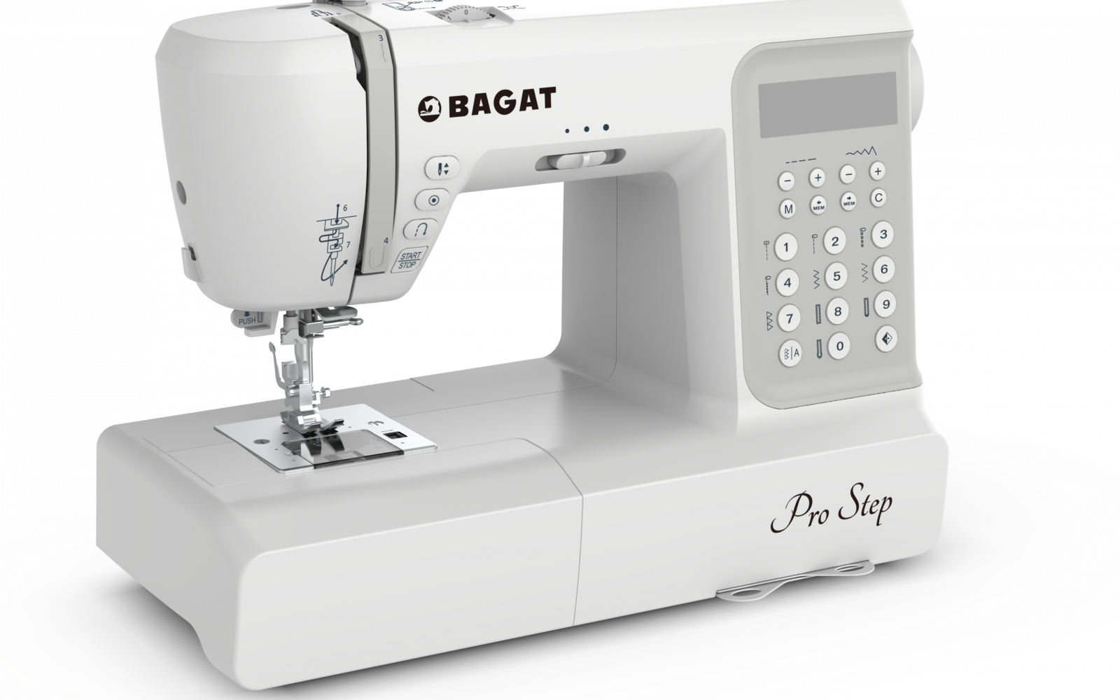 Najnaprednejši računalniško voden šivalni stroj iz družine Bagat je nedvomno Pro Step, ki s svojimi odlikami pripomore k vaši ustvarjalnosti. Primeren je tako za začetnike, kot tudi za tiste, ki sukanec vrtite že več let. Je izjemno enostaven za upravljanje, je zanesljiv in se odlične obnese tako pri šivanju osnovnih, kot tudi raztegljivih in debelejših materialov.