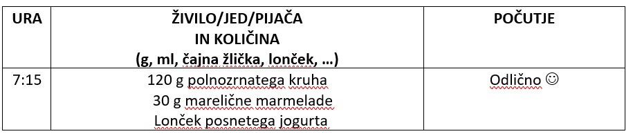 Zapišite si uro, ob kateri ste jedli ter vsa živila, ki ste jih zaužili v tem obroku. Sproti tudi zapisujte, kakšno je vaše počutje po tej hrani.