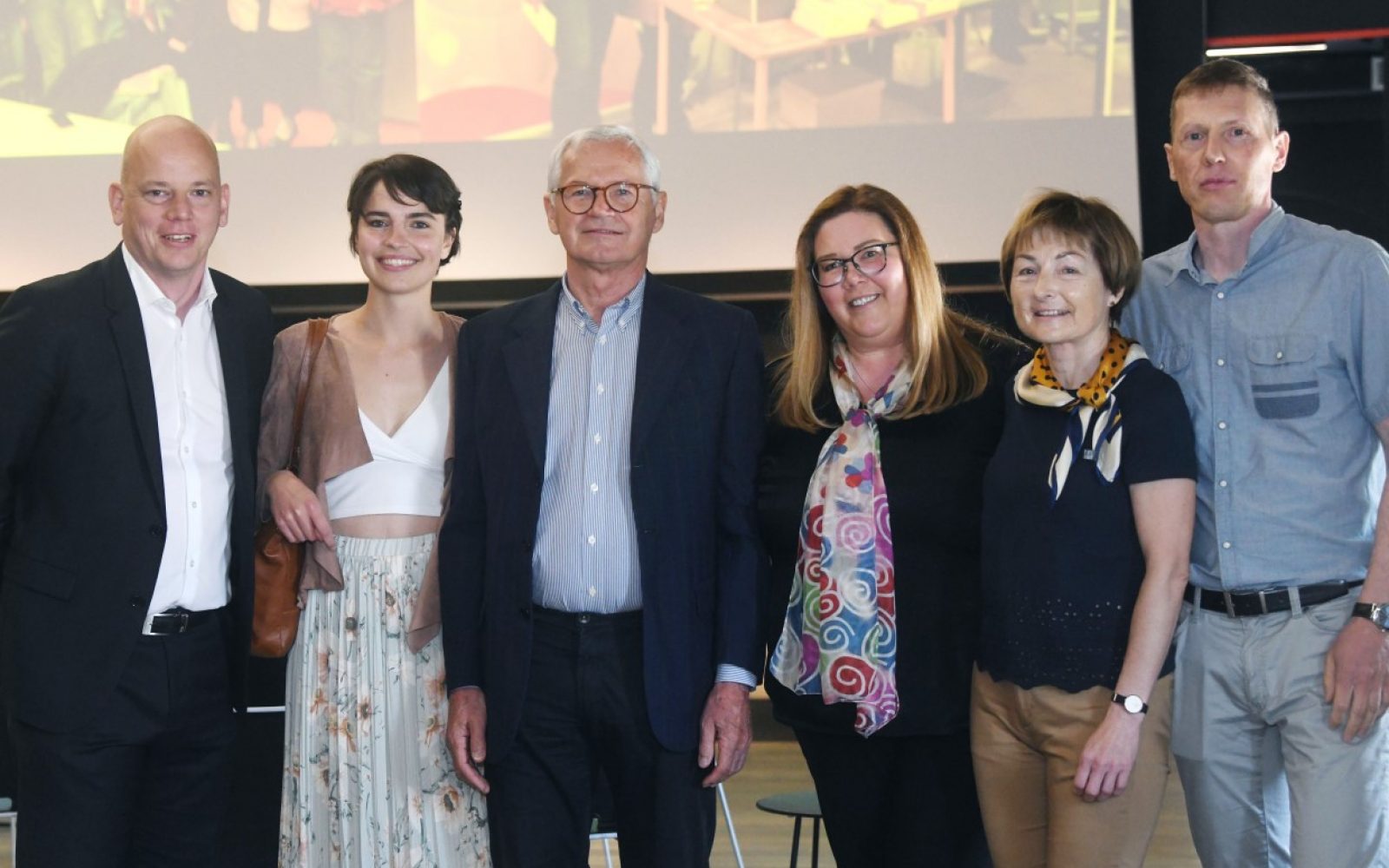 Z leve - Jaka Cepec, Ajda Cvelbar, prof. dr. Peter Černelč, Kristina Modic, Milena Remic in Luka Konič.
