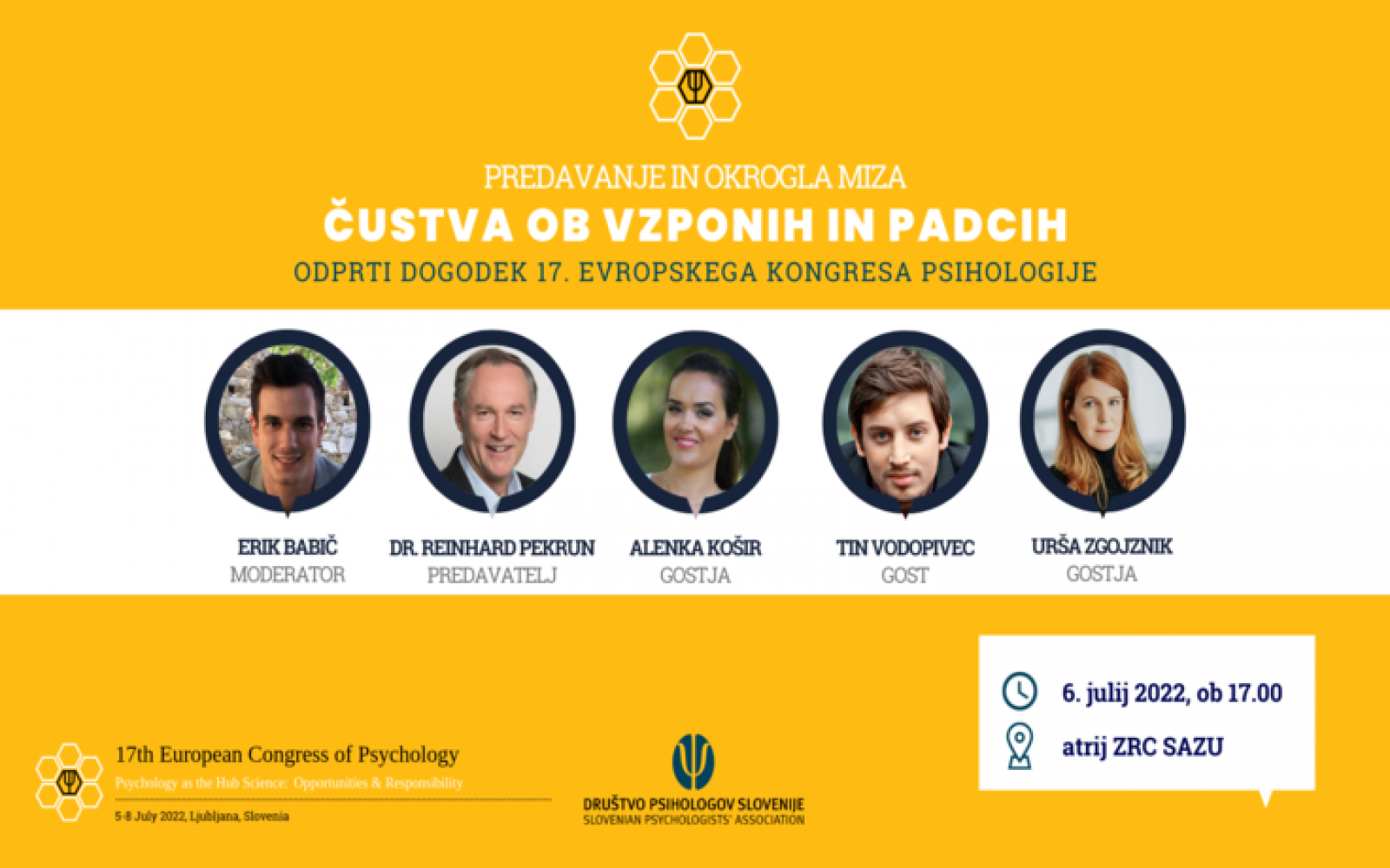O tem, s kakšnimi čustvi se srečujemo ob vzponih in padcih, kaj doživljamo na poti do dosežkov, bomo govorili 6. 7. v atriju ZRC SAZU v sklopu odprtega dogodka Evropskega kongresa psihologije 2022.