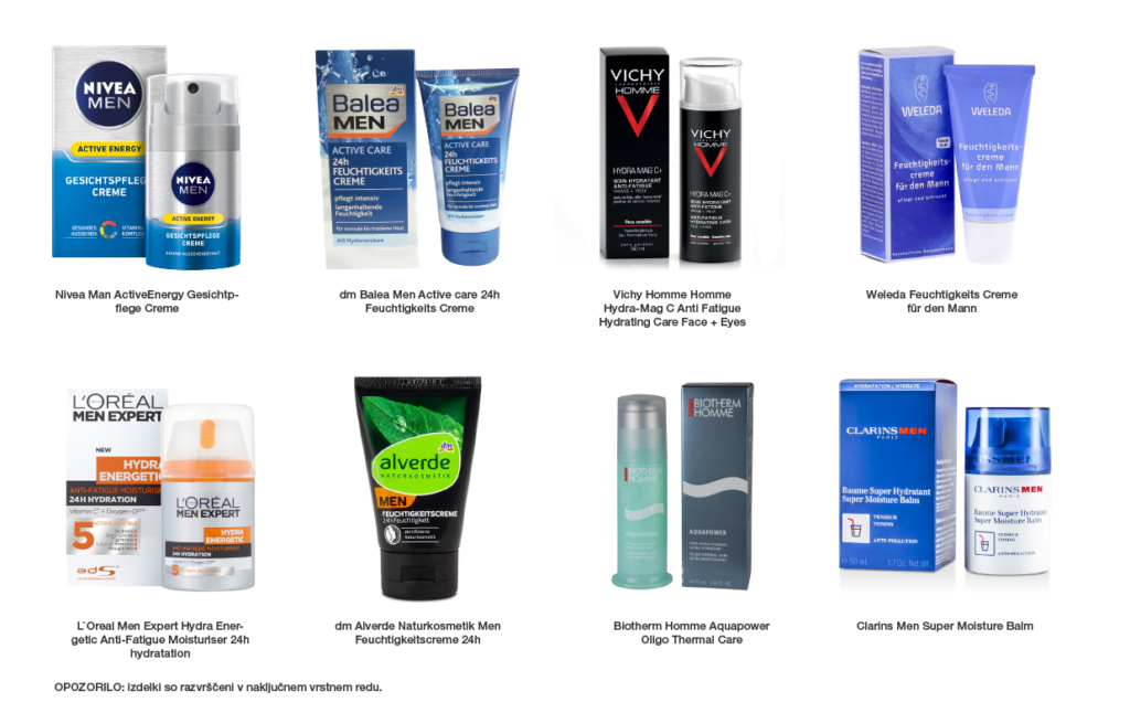 Tokrat so bile pod drobnogledom kreme za moške. Tudi tu se je izkazalo, da za dobro kremo ni treba seči globoko v žep.